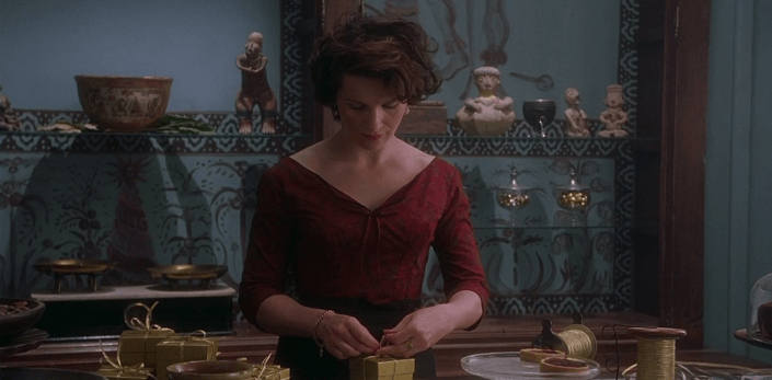 Vianne és Roux szenvedélye vitathatatlan, de talán jobban leírja amire gondolunk az a jelenet, amikor egy átlagos feleség chillis csokoládét vásárol a férjének, hogy hamvaiból újraélessze a lángot, ami már rég kialudni látszik. A csoki véletlenül kerül a férjhez, és azon az éjszakán újabb varázslat járja át a két embert.